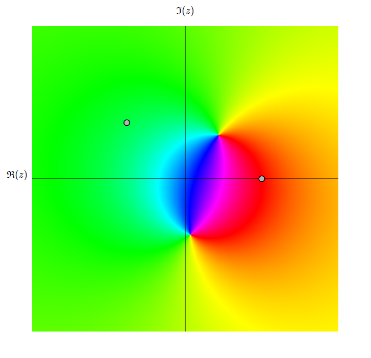 The two grey points represent \(z_{1} = w_{1}\) and \(z_{2} = w_{2}\), and by dragging your mouse,